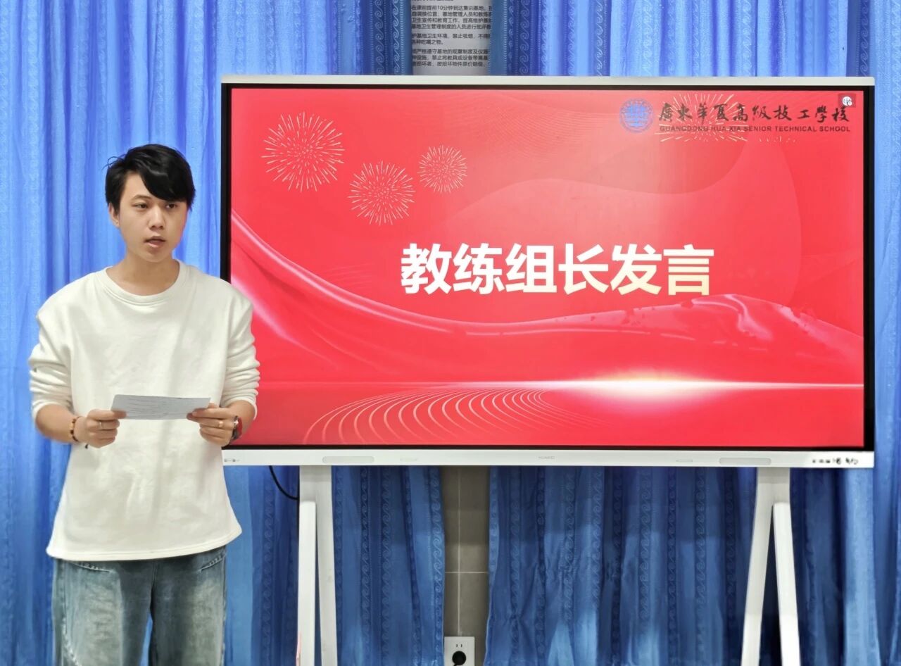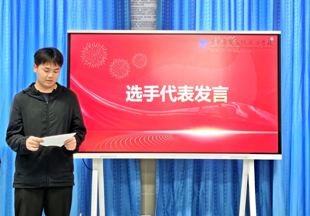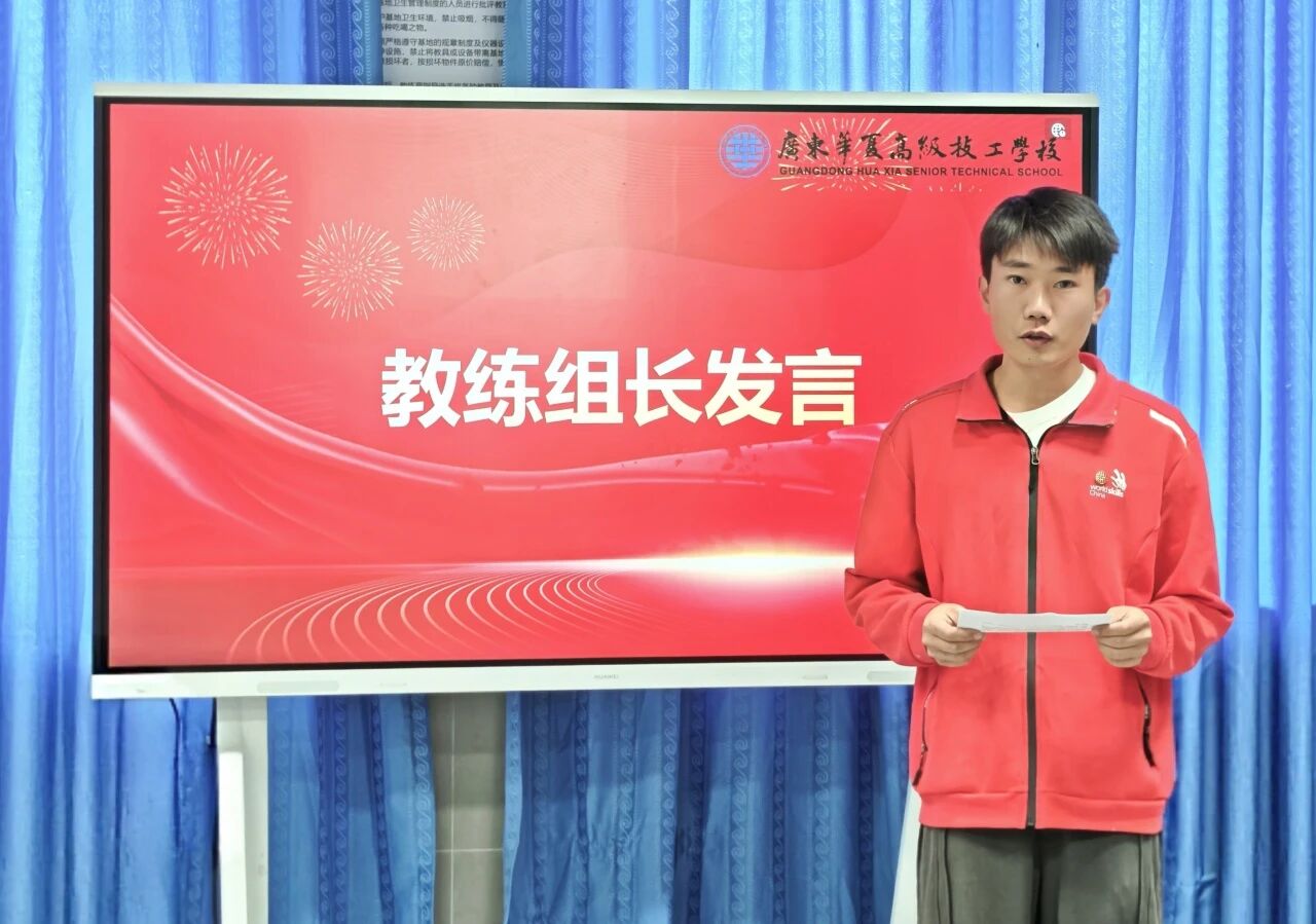 选手代表温炜寅字字铿锵地表达了刻苦训练、奋勇争先的决心与信心。表示将以饱满的热情、坚韧的毅力投入集训,勤学苦练、精益求精,力争在各项赛事中展现华夏学子的技能风采,为校争光。